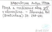 HABOVŠTIAK Anton 1972 a Pôvod a rozšírenie slova prť v slovenčine.
