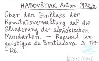 HABOVŠTIAK Anton 1972 b Über den Einfluss der Komitatsverwaltung auf die Gliederung der slowakischen Mundarten.
