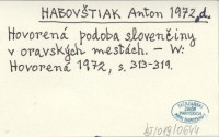 HABOVŠTIAK Anton 1972 d Hovorená podoba slovenčiny v oravských mestách.