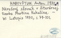 HABOVŠTIAK Anton 1972 e Nárečový slovník v literárnej tvorbe Martina Kukučína.