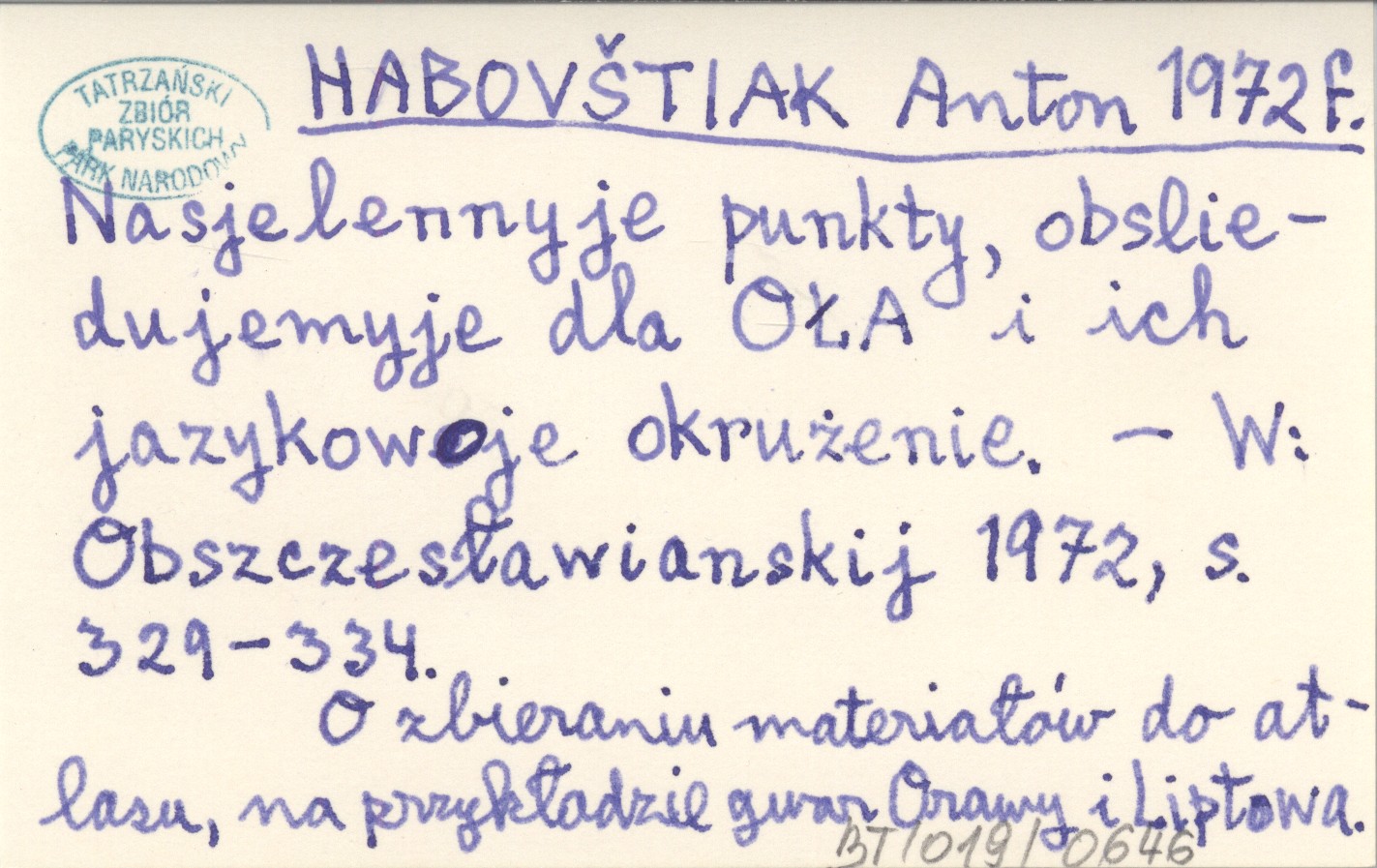 HABOVŠTIAK Anton 1972 f Nasjelennyje punkty, obsliedujemyje dla OŁA i ich jazykowoje okrużenie.