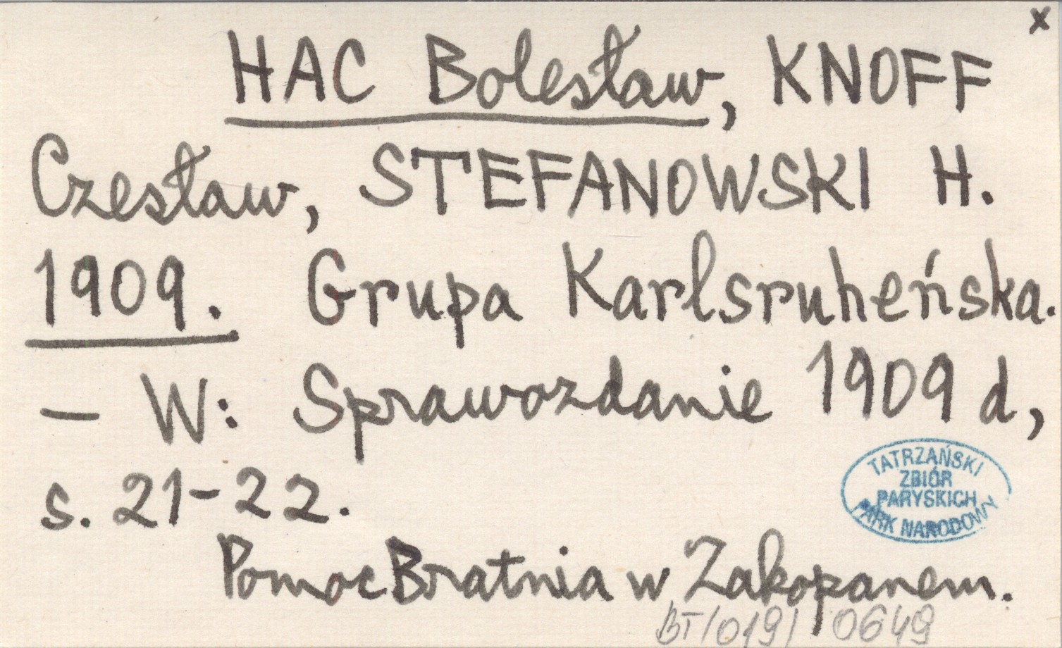 Sprawozdanie 1909 d, S. 21-22. , Pomoc Bratnia w Zakopanem.