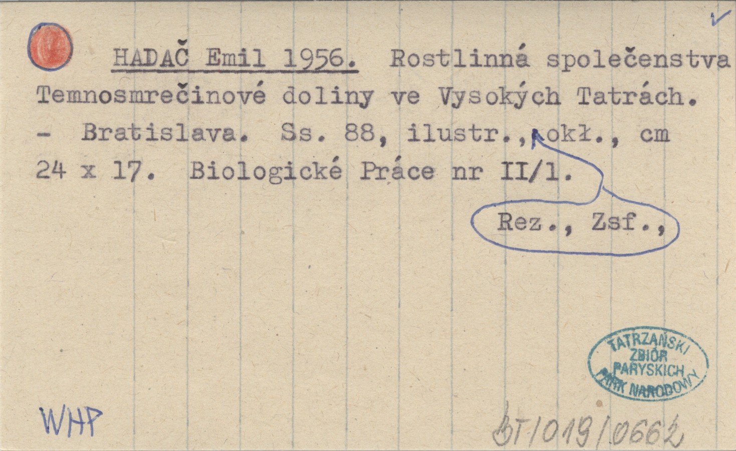 HADAČ Emil 1956 Rostlinná společenstva Temnosmrečinové doliny ve Vysokých Tatrách.