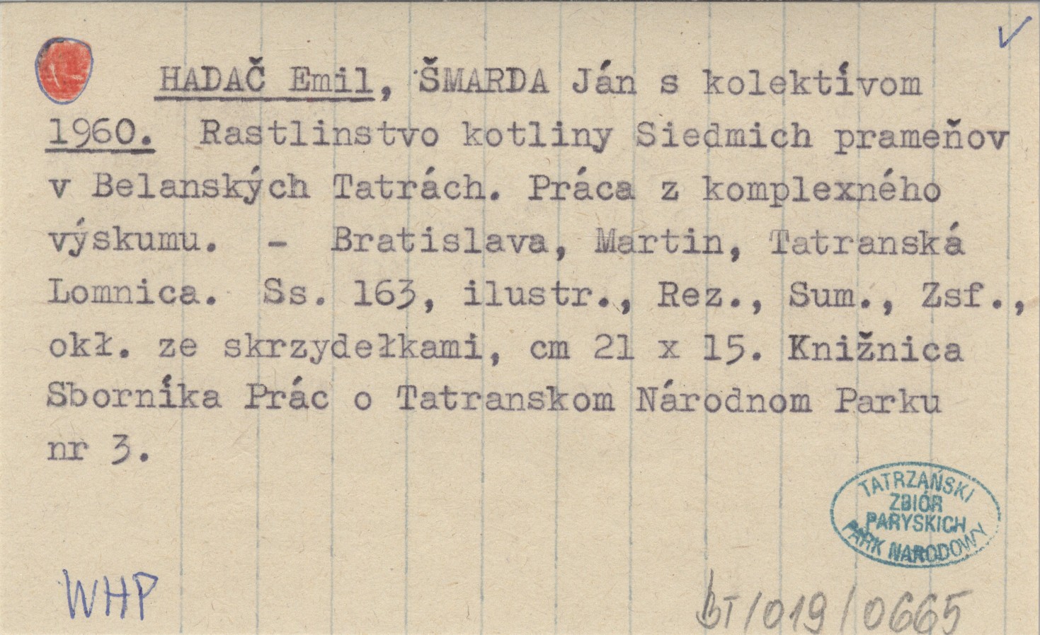 Bratislava, Martin, Tatranská Lomnica (Kniľnica Sborníka Prác o Tatranskom Národnom Parku; 3) , 163 s., il., Rez., Sum., Zsf., okł., 21x15 cm.