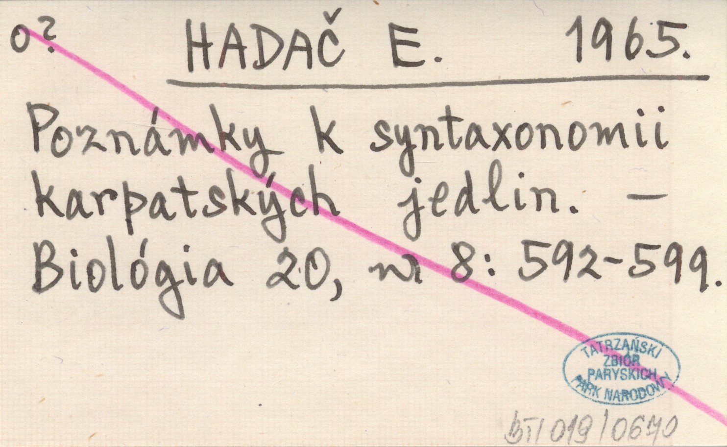 HADAČ E. 1965 Poznámky k syntaxonomii karpatských jedlin.