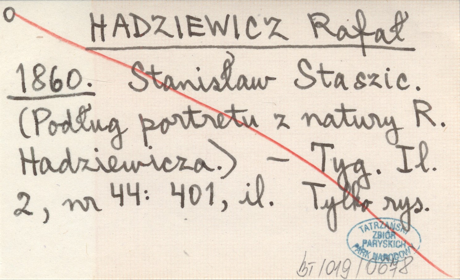 HADZIEWICZ Rafał 1860 Stanisław Staszic. (Podług portretu z natury R. Hadziewicza).