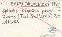 HADRI-DREVENISKÝ 1942 Spišské ľubostné piesne.