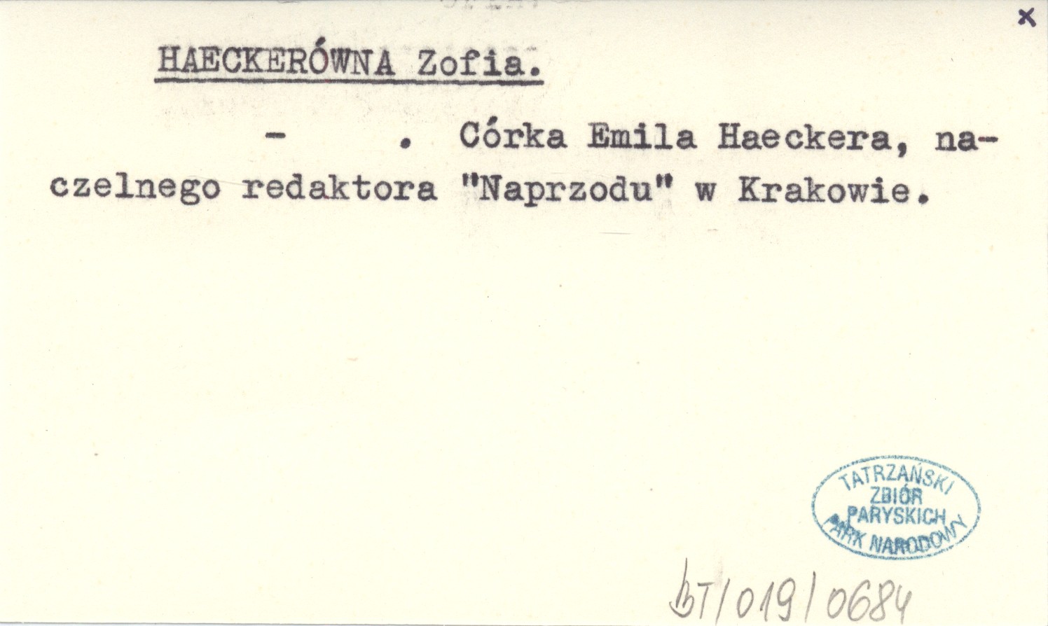 Córka Emila Haeckera, naczelnego redaktora "Naprzodu" w Krakowie.