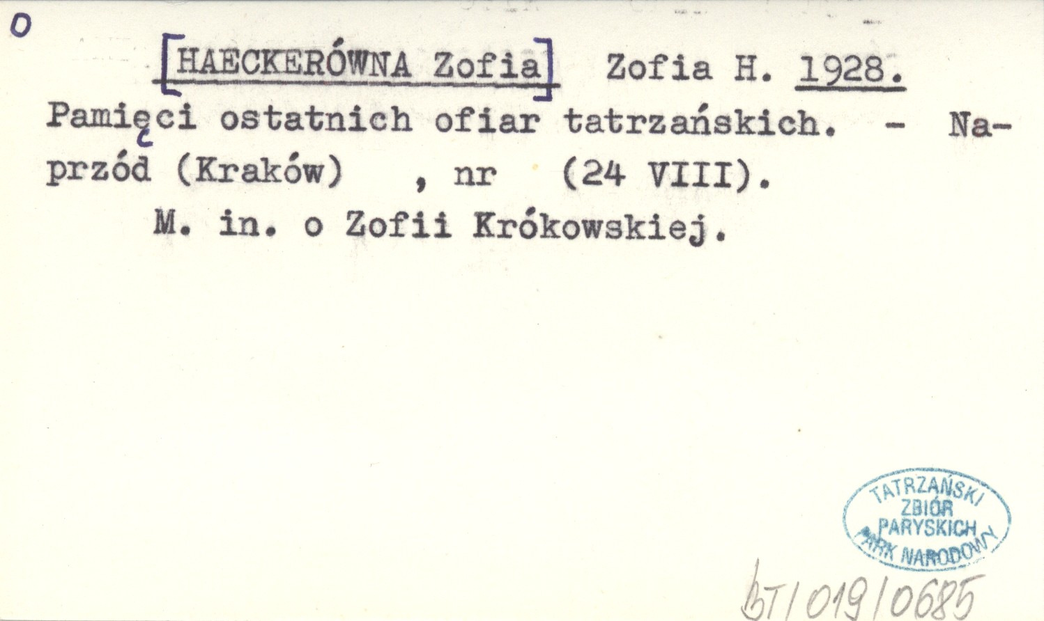 Naprzód (Kraków) , 24 VIII. M. in. o Zofii Krókowskiej.