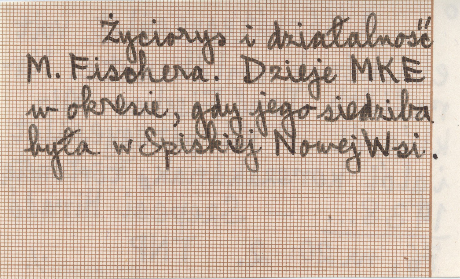 Szepesi Hiradó, 76, nr 20: 2. Życiorys i działalno¶ć M. Fischera. Dzieje MKE w okresie, gdy jego siedziba była w Spiskiej Nowej Wsi.