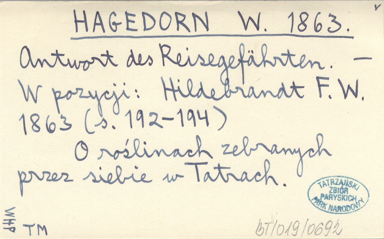 Hildebrandt F.W. 1863 (S. 192-194). , O roślinach zebranych przez siebie w Tatrach.