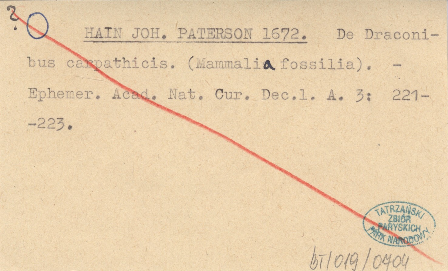 HAIN JOH. PATERSON 1672 De Draconibus carpathicis. (Mammalia fossilia).