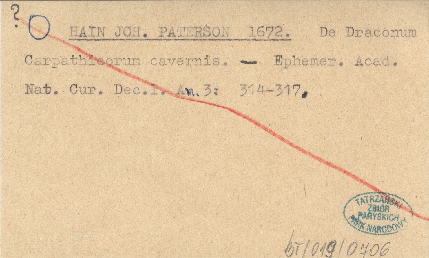 HAIN JOH. PATERSON 1672 De Draconum Carpathicorum cavernic.