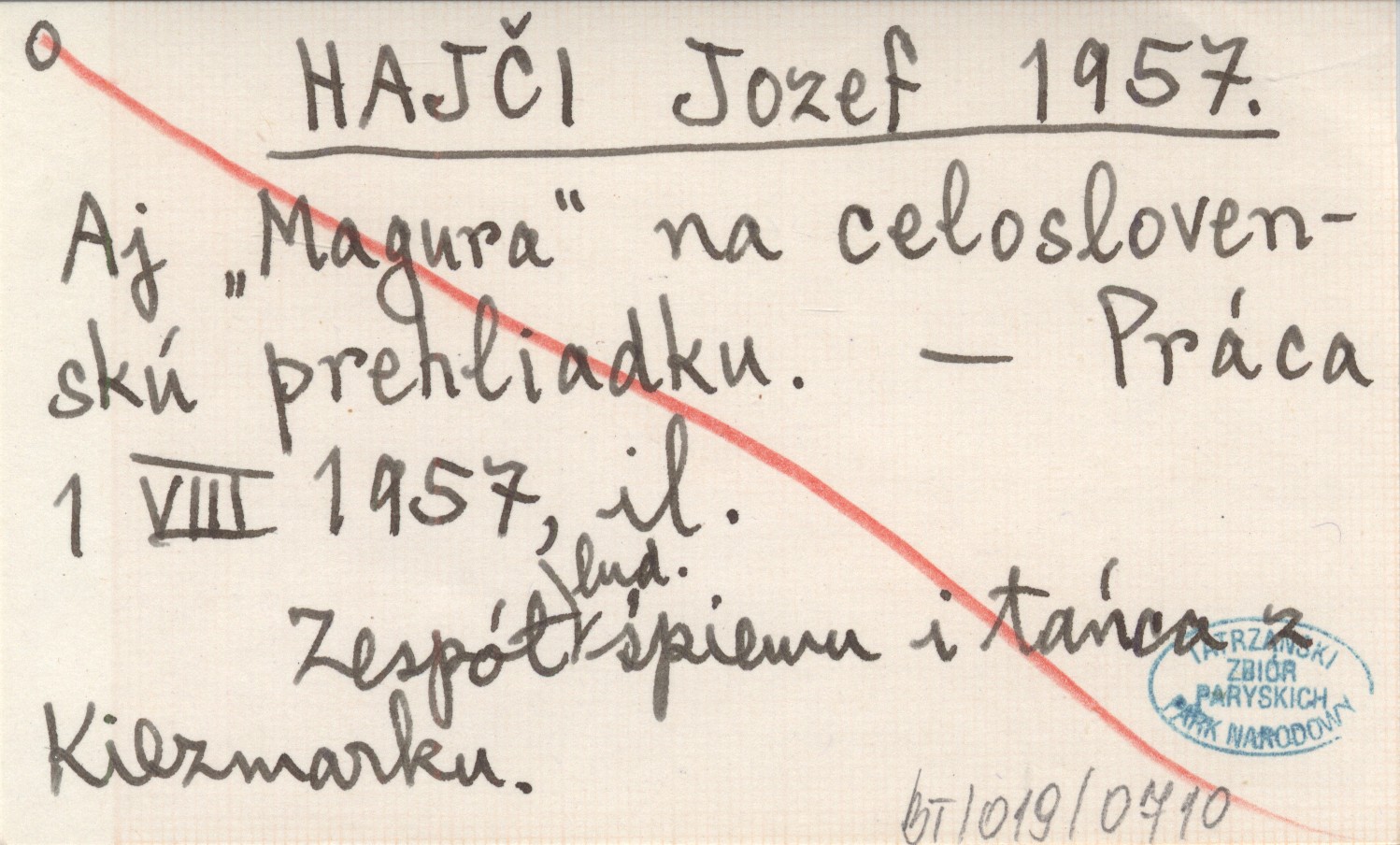 HAJČI Jozef 1957 Aj "Magura" na celoslovenskú prehliadku.