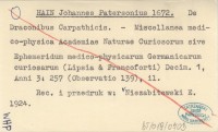 HAIN Johannes Patersonius 1672 De Draconibus Carpathicis.