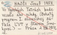 HAJÈI Jozef 1957 Vo Vysokých Tatrách bude veselo ako nikdy. (Bohatý program I. slovenskej sú»a¾e ¥UT v Starom Smokovci).