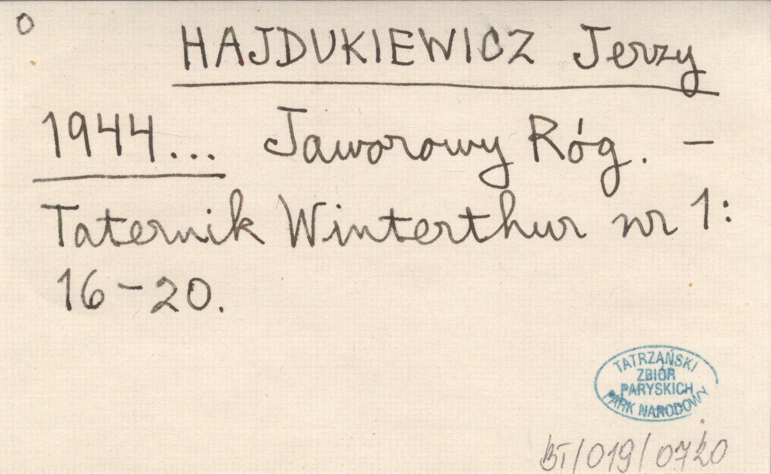 Taternik Winterthur, Nr 1: 16-20.