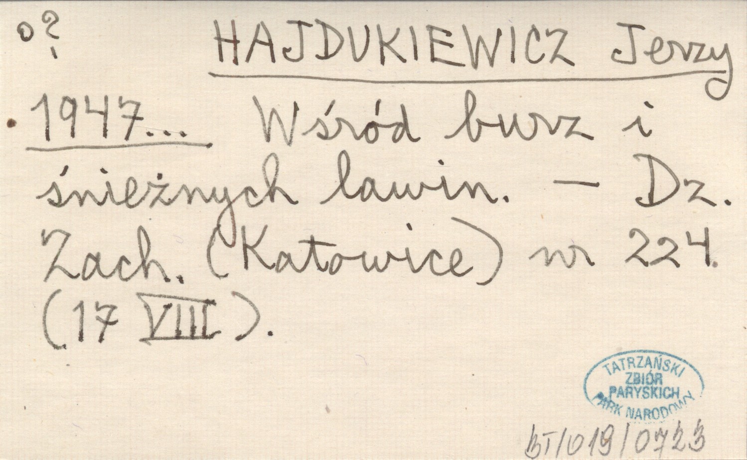 HAJDUKIEWICZ Jerzy 1947... Wśród burz i śnieżnych lawin.