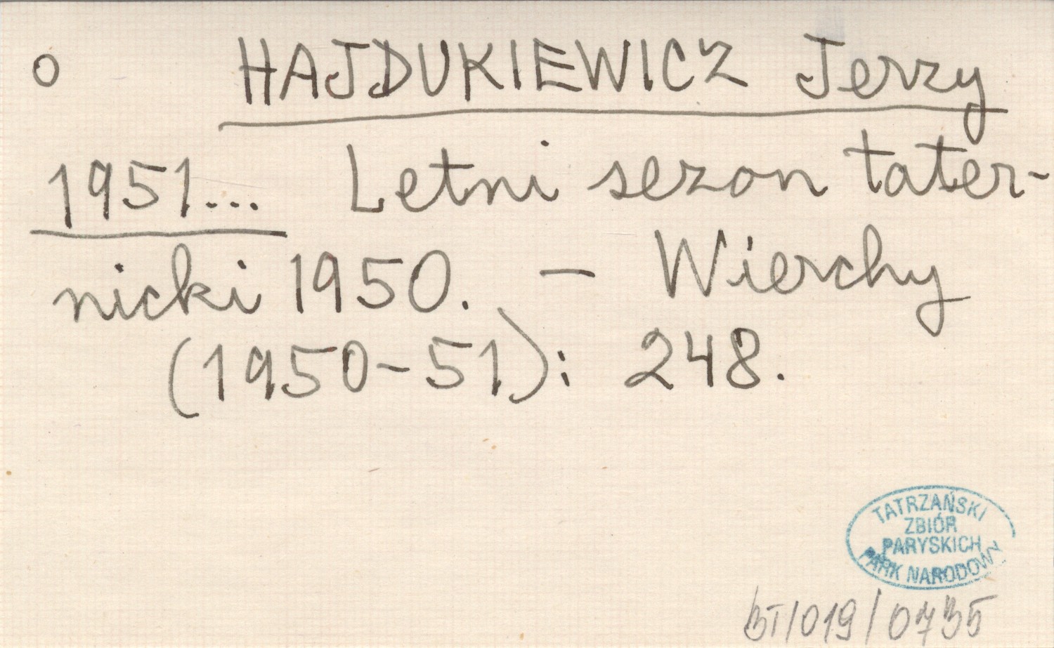 HAJDUKIEWICZ Jerzy 1951... Letni sezon taternicki 1950.