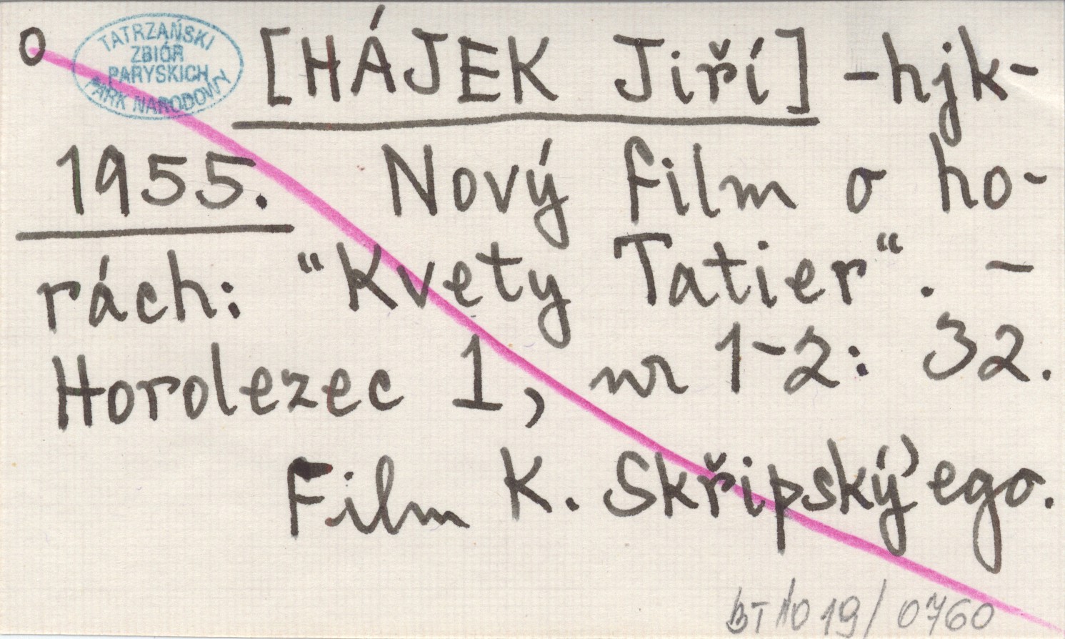 -hjk- [HÁJEK Jiří] 1955 Nový film o horách: "Kvety Tatier".