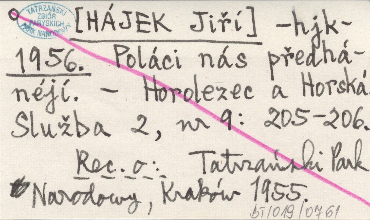 Horolezec a Horská Služba, 2, nr 9: 205-206. Rec. o: Tatrzański Park Narodowy, Kraków 1955.