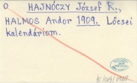 HAJNÓCZY József R. HALMOS, Andor. ; 1909 Lőcsei kalendáriom.