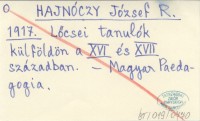 HAJNÓCZY József R. 1917 Lőcsei tanulók külfölfön a XVI és XVII században.