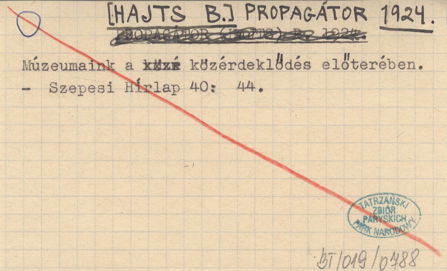 PROPAGÁTOR [HAJTS B.] 1924 Múzeumaink a közérdeklődés előterében.