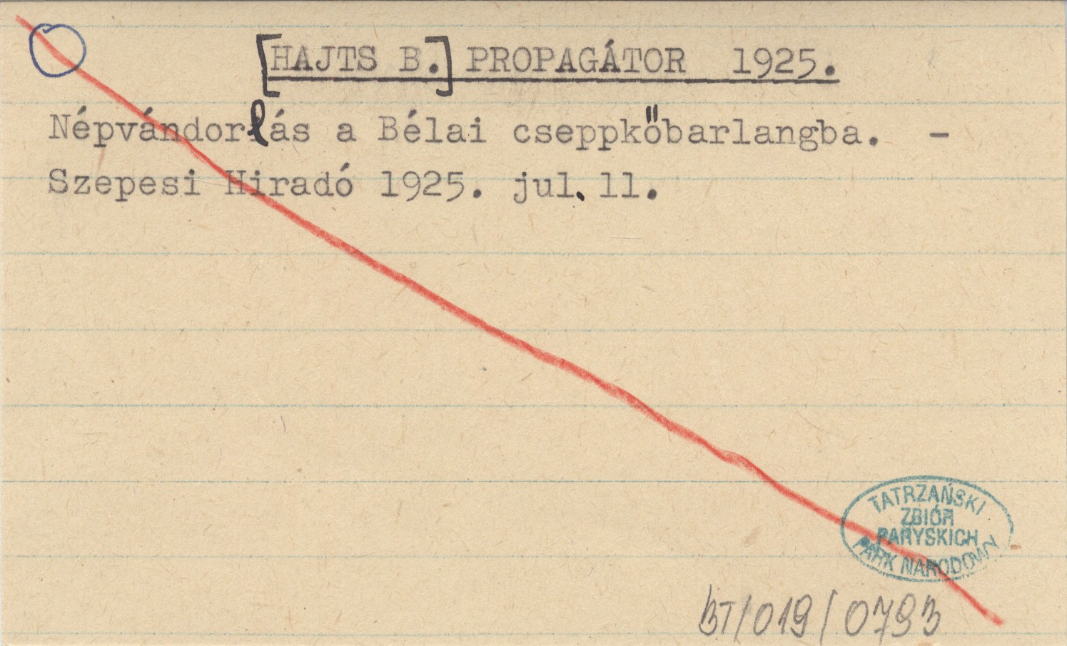 PROPAGÁTOR [HAJTS B.] 1925 Népvándorlás a Bélai cseppkőbarlangba.