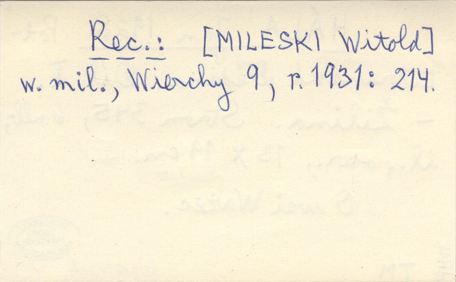Žilina, 345 s., [6] s., il., opr., 13x19 cm. O wsi Ważec. REC: [MILESKI Witold] w. mil., Wierchy 9, r. 1931: 214.