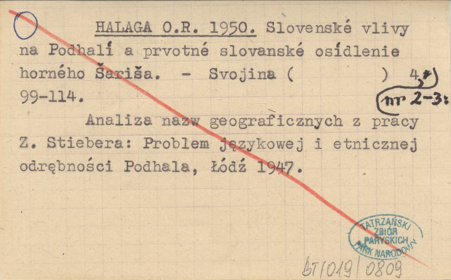 Svojina, 4, nr 2-3: 99-114. Analiza nazw geograficznych z pracy Z. Stiebera: Problem językowej i etnicznej odrębności Podhala, Łódź 1947.