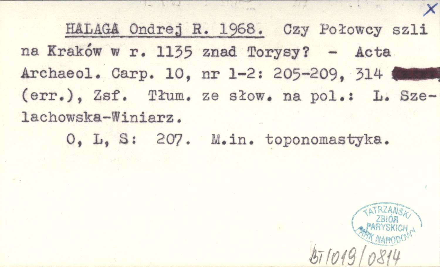HALAGA Ondrej R. 1968 Czy Połowcy szli na Kraków w r. 1135 znad Torysy?