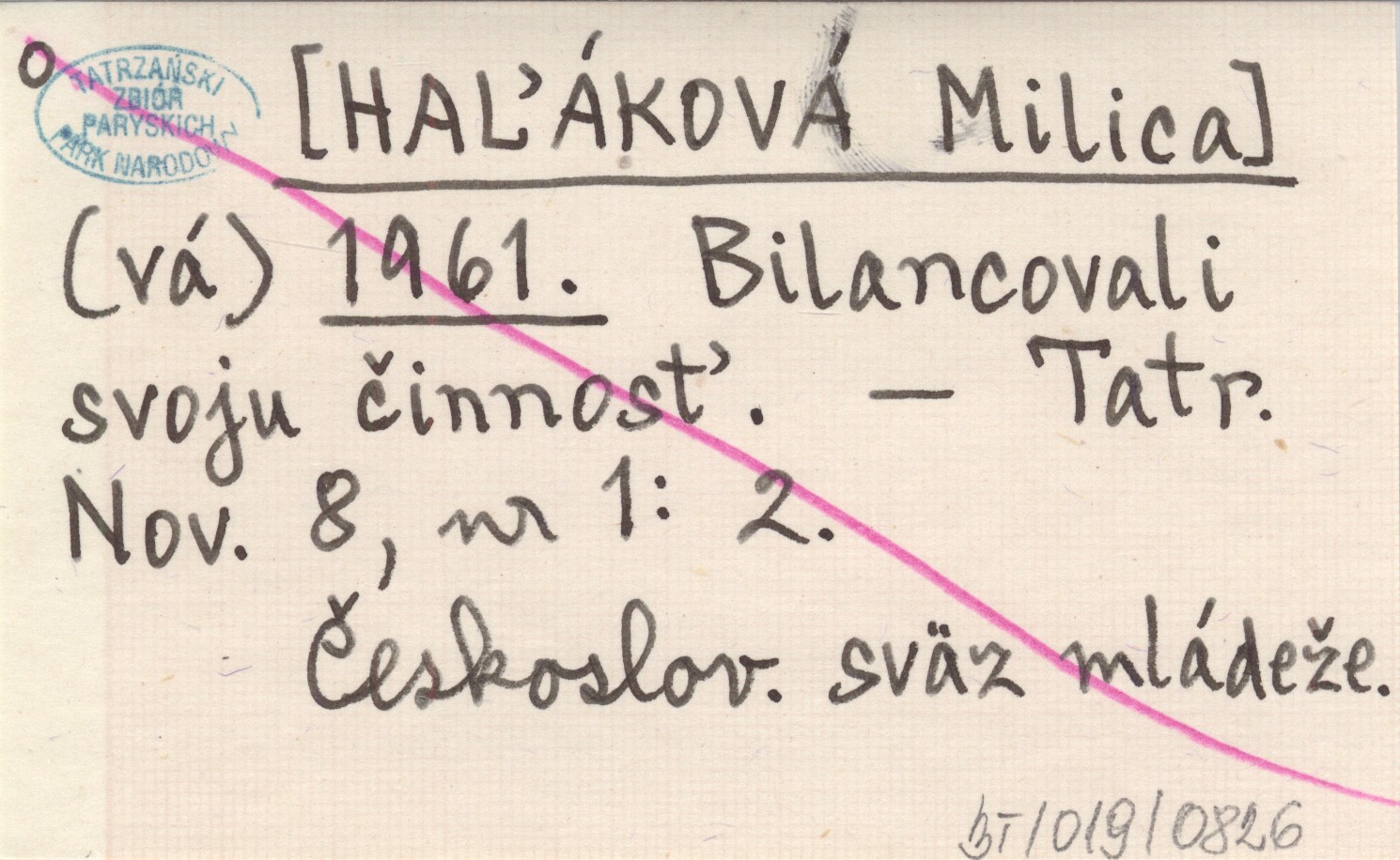 (vá) [HAĽÁKOVÁ Milica] 1961 Bilancovali svoju činnosť.