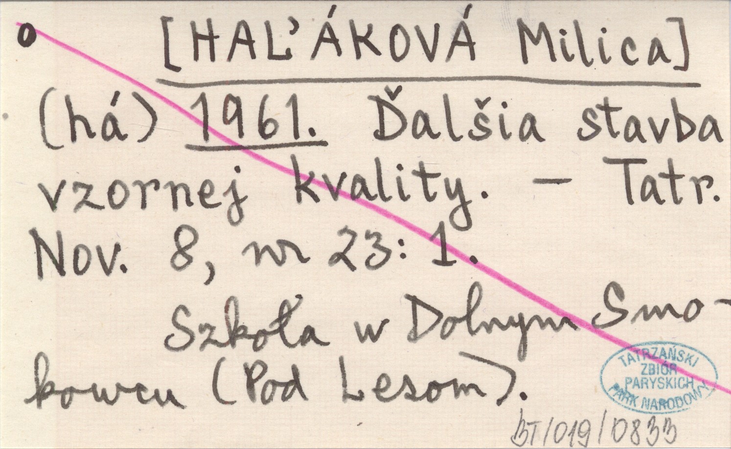 (há) [HAĽÁKOVÁ Milica] 1961 Ďalšia stavba vzornej kvality.