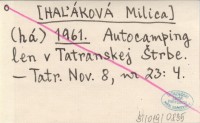 (há) [HAĽÁKOVÁ Milica] 1961 Autocamping len v Tatranskej Štrbe.