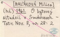 (há) [HAĽÁKOVÁ Milica] 1961 O bytovej situácii v Smokovcoch.