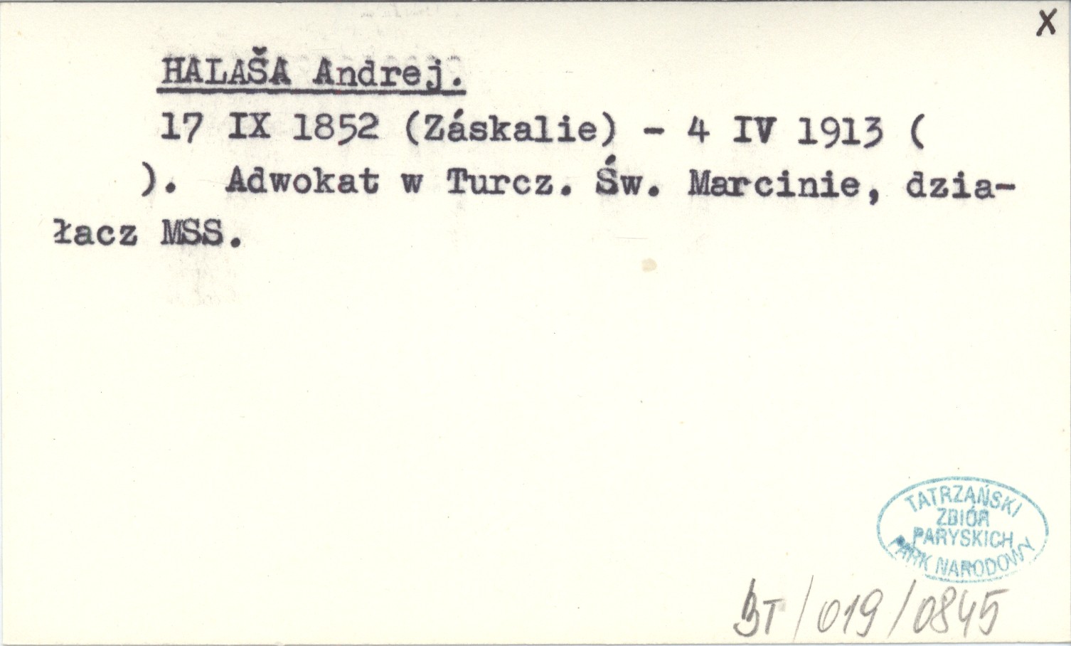 17 IX 1852 (Záskalie) - 4 IV 1913. Adwokat w Turcz. Św. Marcinie, działacz MSS.
