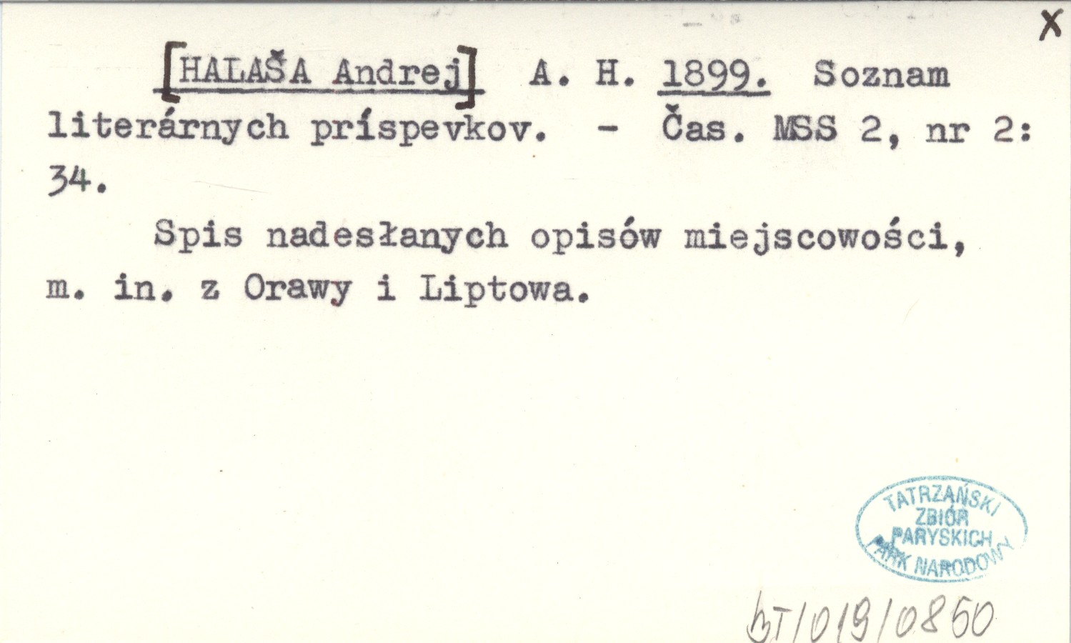 Čas. MSS, 2, nr 2: 34. Spis nadesłanych opisów miejscowości, m. in. z Orawy i Liptowa.