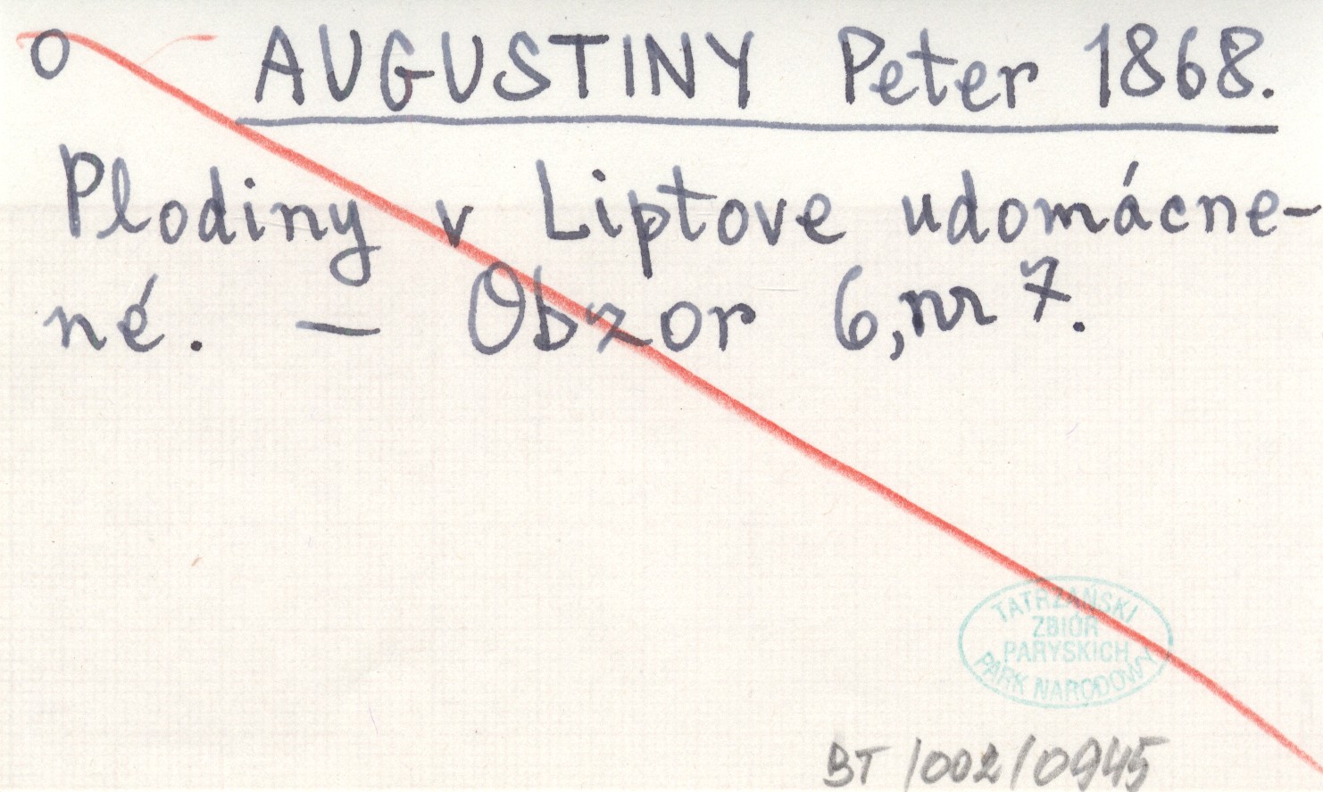 AUGUSTINY Peter 1868 Plodiny v Liptove udomácnené.