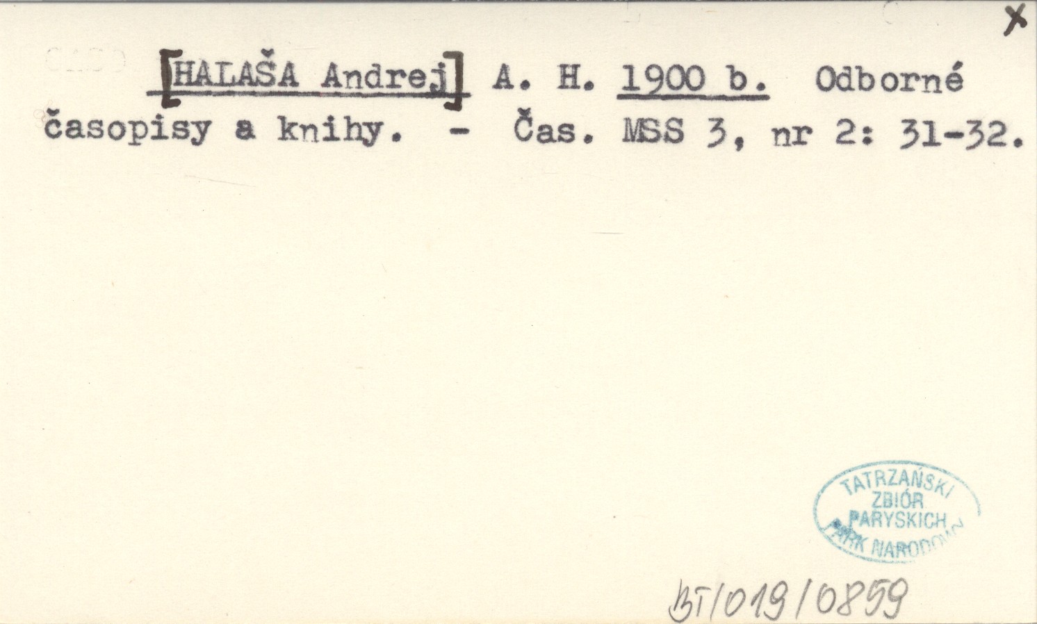 A. H. [HALAŠA Andrej] 1900 b Odborné časopisy a knihy.