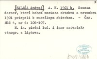 A. H. [HALAŠA Andrej] 1900 Soznam darcov, ktorí behom mesiaca apríla a mája 1900 prispeli k museálnym sbierkam.