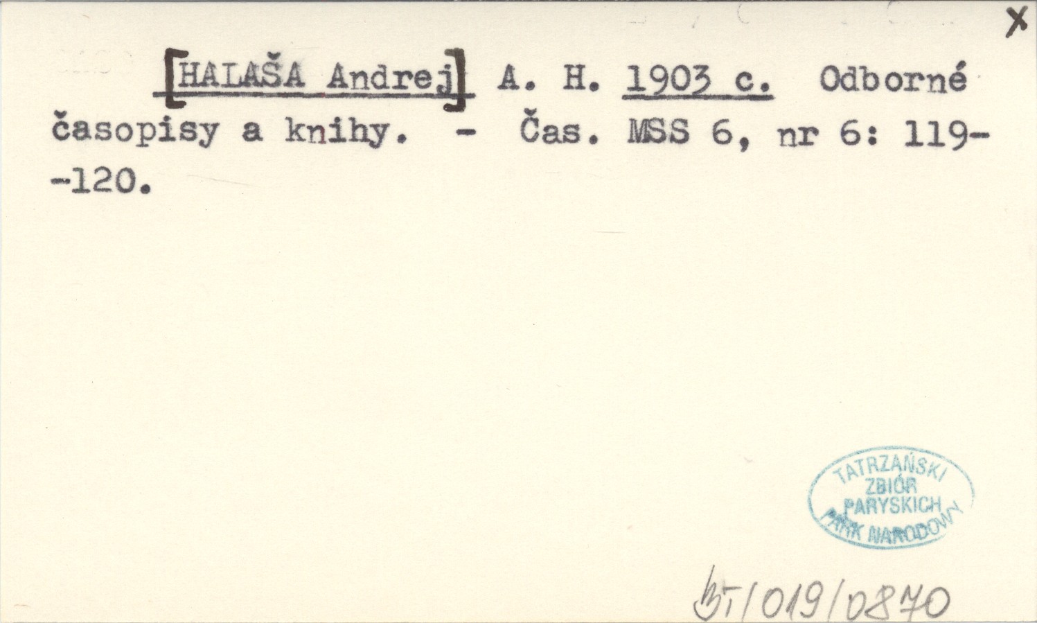 A. H. [HALAŠA Andrej] 1903 c Odborné časopisy a knihy.