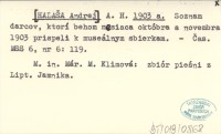 A. H. [HALAŠA Andrej] 1905 Soznam darcov, ktorí behom mesiaca februára a marca 1905 prispeli k museálnym sbierkam.