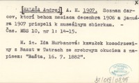 A. H. [HALAŠA Andrej] 1907 Soznam darcov, ktorí behom mesiaca decembra 1906 a januára 1907 prispeli k museálnym sbierkam.
