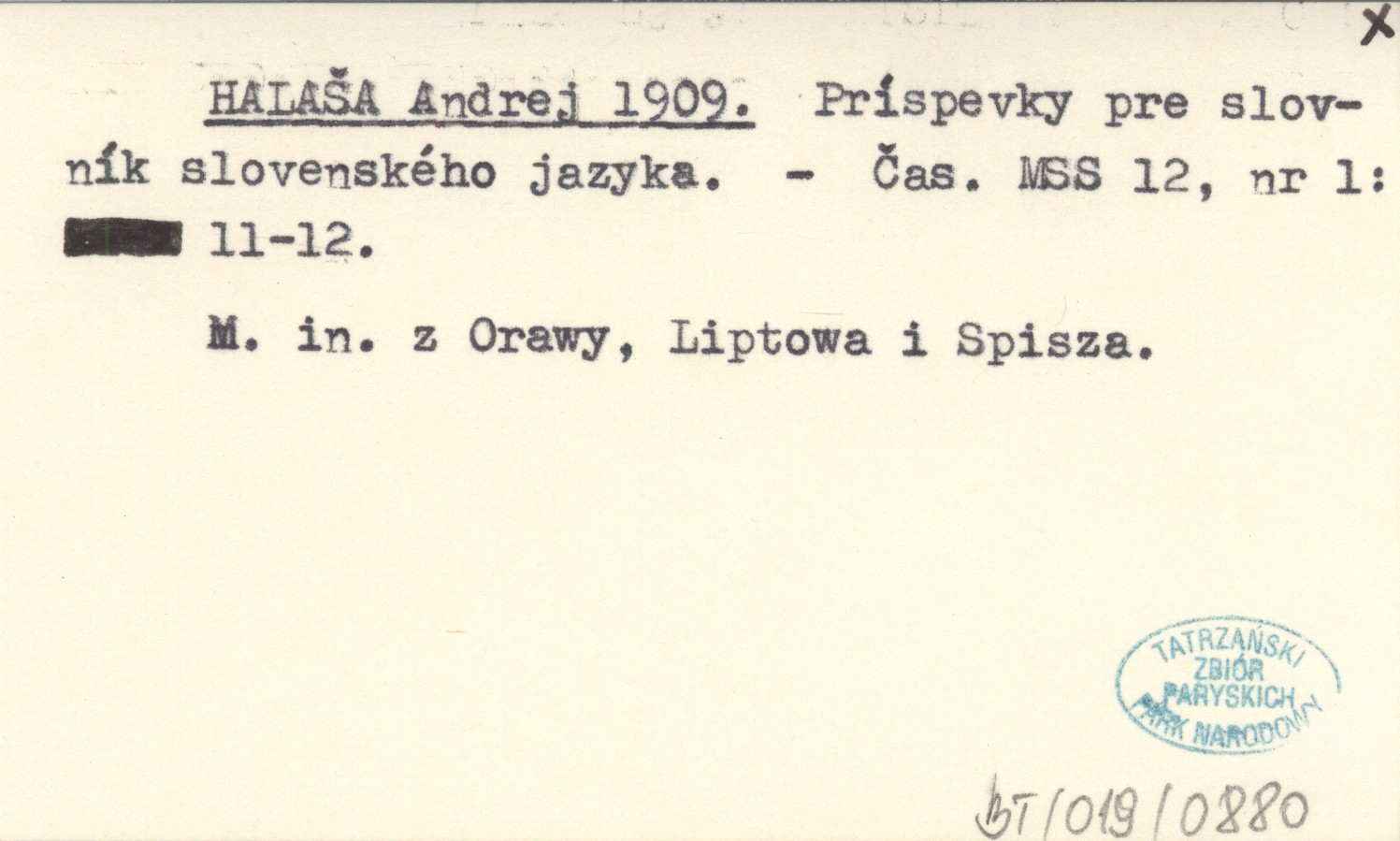 Čas. MSS, 12, nr 1: 11-12. M. in. z Orawy, Liptowa i Spisza.