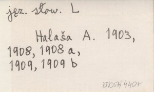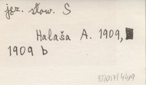 HALAŠA Andrej 1909 Príspevky pre slovník slovenského jazyka.