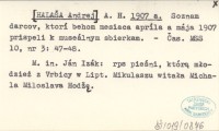 A. H. [HALAŠA Andrej] 1907 a Soznam darcov, ktorí behom mesiaca apríla a mája 1907 prispeli k museálnym sbierkam.
