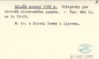 HALAŠA Andrej 1908 a Príspevky pre slovník slovenského jazyka.