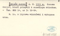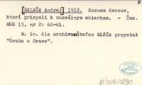 A. H. [HALAŠA Andrej] 1911 b Soznam darcov, ktorí prispeli k muzeálnym sbierkam.