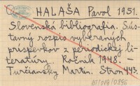 HALAŠA Pavol 1951 Slovenská bibliografia. Sústavný rozpis vyberaných príspevkov z periosickej literatúry. Ročnik 1948.